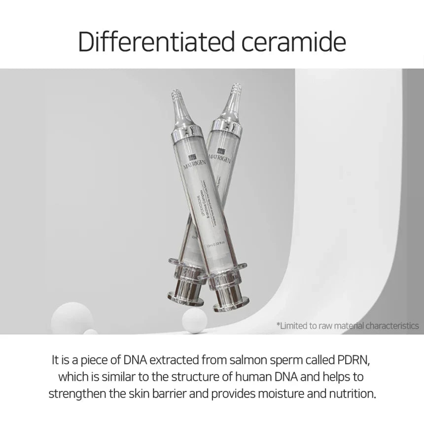 Matrigen LipoExosome B‑Archive Complex je profesionální ampulové sérum na obličej, krk a dekolt navržené pro komplexní anti‑aging péči, regeneraci pleti, zvýšení elasticity a hydrataci. Tento korejský profesionální kosmetický produkt kombinuje exosomy z kultivační tekutiny kmenových buněk a extrakt z kalusu protěže, které přenášejí růstové faktory a bioaktivní látky, podporují syntézu kolagenu, urychlují regeneraci pokožky a zlepšují její celkový vzhled a vitalitu. Formule je obohacena o PDRN (sodík DNA), ceramidové perličky a komplex 7 peptidů, které pomáhají posilovat kožní bariéru, zadržovat vlhkost, a díky tomu je pleť déle hydratovaná, hladší, pevnější a odolnější vůči vnějším vlivům.