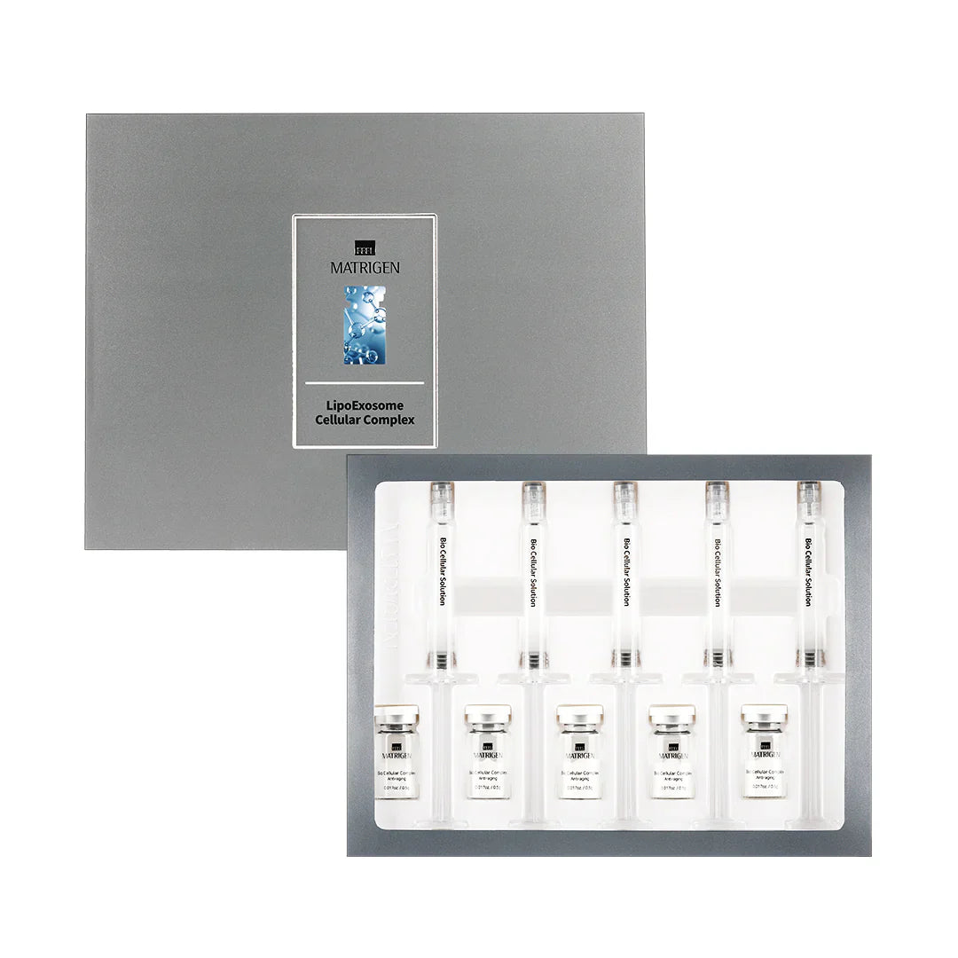 Matrigen Lipsonome Cellular Complex je profesionální ampulkový komplex na obličej, krk a dekolt navržený pro pokročilou anti‑aging, regeneraci, hydrataci a obnovu pleti. Tento korejský profesionální kosmetický produkt využívá exosomy (kultivace z kmenových buněk pupečníkové krve) – drobné extracelulární váčky přenášející růstové faktory a bioaktivní látky, které podporují mezibuněčnou komunikaci, regeneraci pleti a stimulují tvorbu kolagenu. Unikátní lyofilizační metoda (sušení mrazem) zachovává maximální čerstvost a aktivitu látek, zatímco technologie nízkomolekulárního kolagenu (500 Da) a ultra nízkomolekulární kyseliny hyaluronové (10 000 Da) zajišťuje hlubokou hydrataci a viditelný liftingový efekt. Komplex 10 druhů peptidů, sójový protein a PDRN podporují přirozenou regeneraci stárnoucí pleti a pomáhají obnovit její pevnost, pružnost a vitální vzhled.